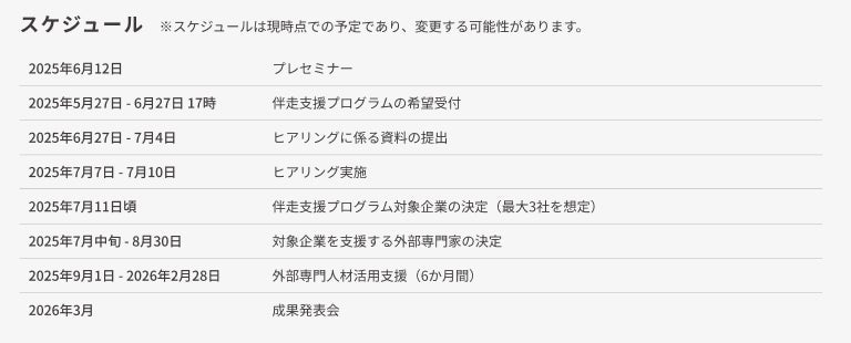 6月12日(木)には、地域スタートアップにおいて組織や事業を拡大させるに当たっての効果的な人事・採用戦略を描き、実績を積んでこられたビザスク登録エキスパートを現地に招き、本事業のキックオフイベントを開催いたします。県内スタートアップ企業が社外有識者を活用して更なる成長を目指すきっかけにしていただくとともに、本事業の趣旨・詳細をご説明いたします。また同日より伴走支援を希望する県内スタートアップ企業の募集を開始いたします。