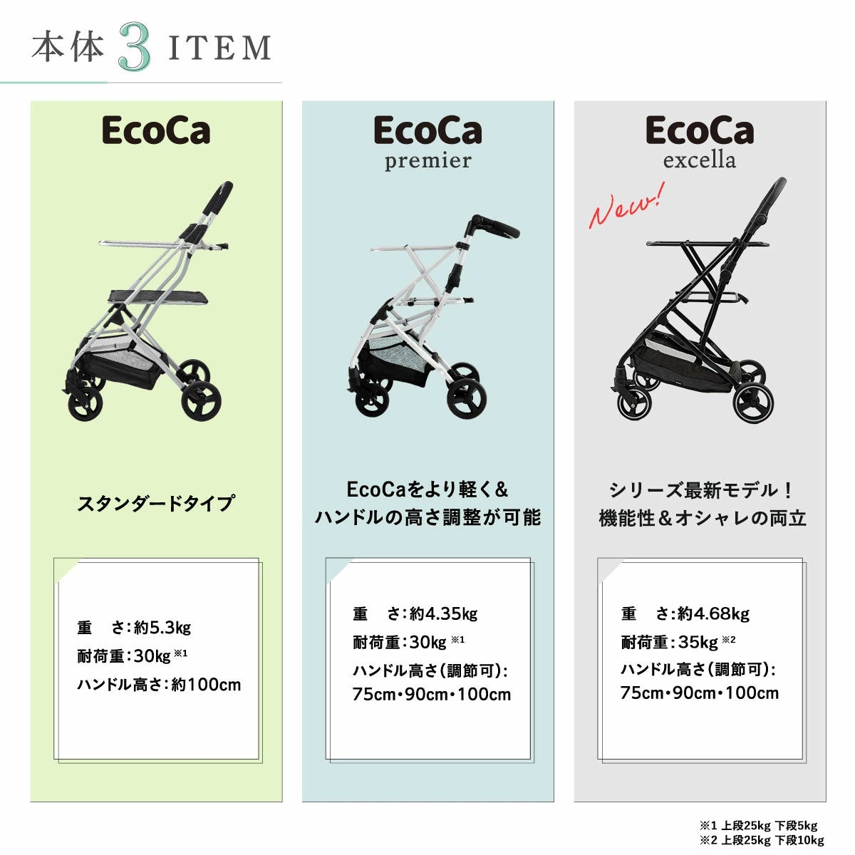 『EcoCa』シリーズは、スタンダード、プレミア、エクセラの3種類からお選びいただけます。