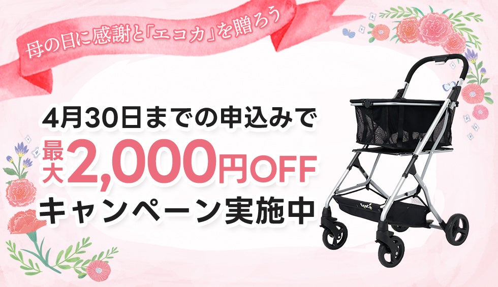 本キャンペーンでは、日ごろの感謝の気持ちを込めて、4月30日EcoCaシリーズを最大2,000円OFFの特別価格でご提供。離れて暮らすお母さんへの直送や、配達日の指定をしていただけ、お母さんへの “ありがとう”のお手伝いをいたします。