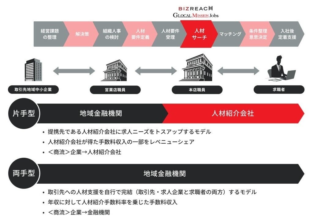 当社は、幹部人材に特化した地方採用支援サービス『Glocal Mission Jobs(GMJ)』(https://glocalmissionjobs.jp/)を運営し、116の金融機関との連携を通じて、地方中小企業が都市部の優秀な人材を経営幹部や事業承継者候補として、正社員採用をするための支援を行っています。また、人材紹介事業の開始を希望する地域金融機関に対して、事業立ち上げの伴走支援サポートを行っております。