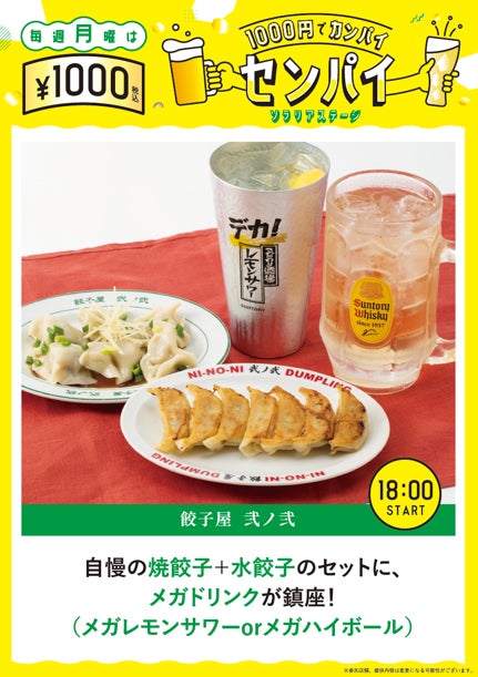 自慢の焼餃子+水餃子のセットに、メガドリンクが鎮座!(メガレモンサワーorメガハイボール)
