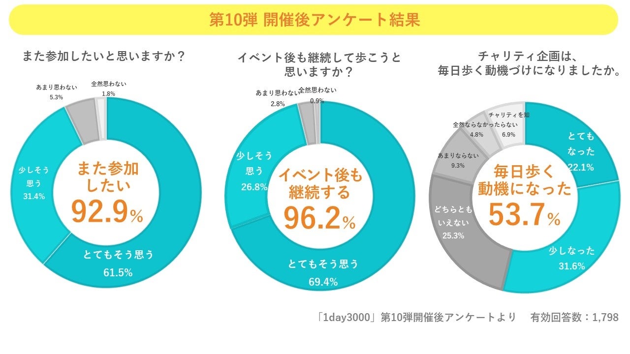 1day3000に「また参加したい」は9割超え、チャリティ企画は歩く動機づけの1つに