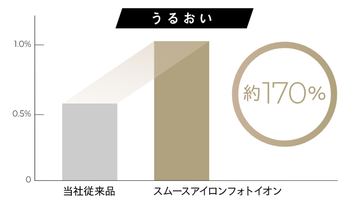 *2 【試験概要】ダメージ処理を施した人毛サンプルを洗髪・ドライ・ブラッシングを30回繰り返したのち、65℃の乾燥機に40分放置したときの重量と使用前の重量の差分を毛髪内部に残存した水分量とし、当社従来品と比較した結果。本製品:UPモード、当社従来品:HIGHモード。N=6 ※試験機関:(株)消費科学研究所 ※効果には個人差があります ※当社従来品比 (UN-2771)