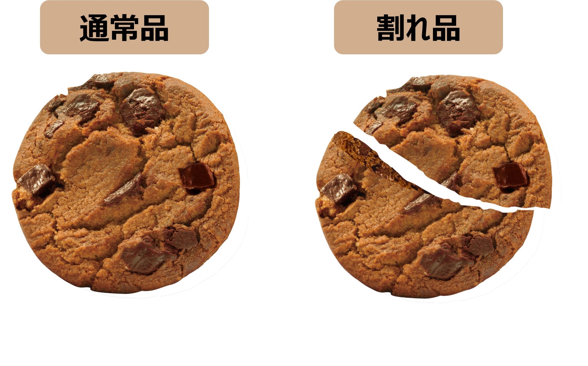 昨年発売の訳あり品の「ムーンライト」に続き、「チョコチップクッキー」でも食品ロス削減 割れたり欠けたりした訳あり品の「チョコチップクッキー」 4月24日(水)より新発売!