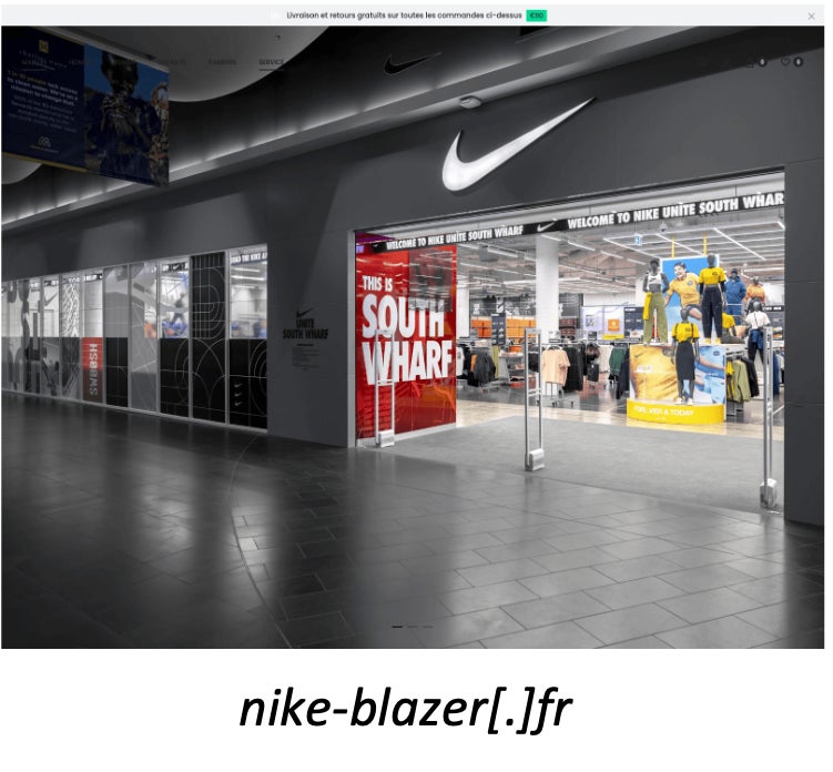 12月のホリデーシーズン中、有名衣料品ブランドのウェブサイトを模倣して消費者を狙うフィッシング詐欺が複数確認されました。例えば、「nike-blazers[.]fr」や「nike-blazer[.]fr」、「nike-air-max[.]fr」といったドメインは、ユーザーにNikeの公式サイトだと信じ込ませるよう設計されていました。こうした詐欺サイトは、ブランドのロゴを複製し、非現実的な低価格を提示して被害者を誘い込みます。その目的は、ユーザーにログイン情報や個人情報といった機密情報を入力させ、ハッカーが効果的にデータを盗み取ることにあります。
