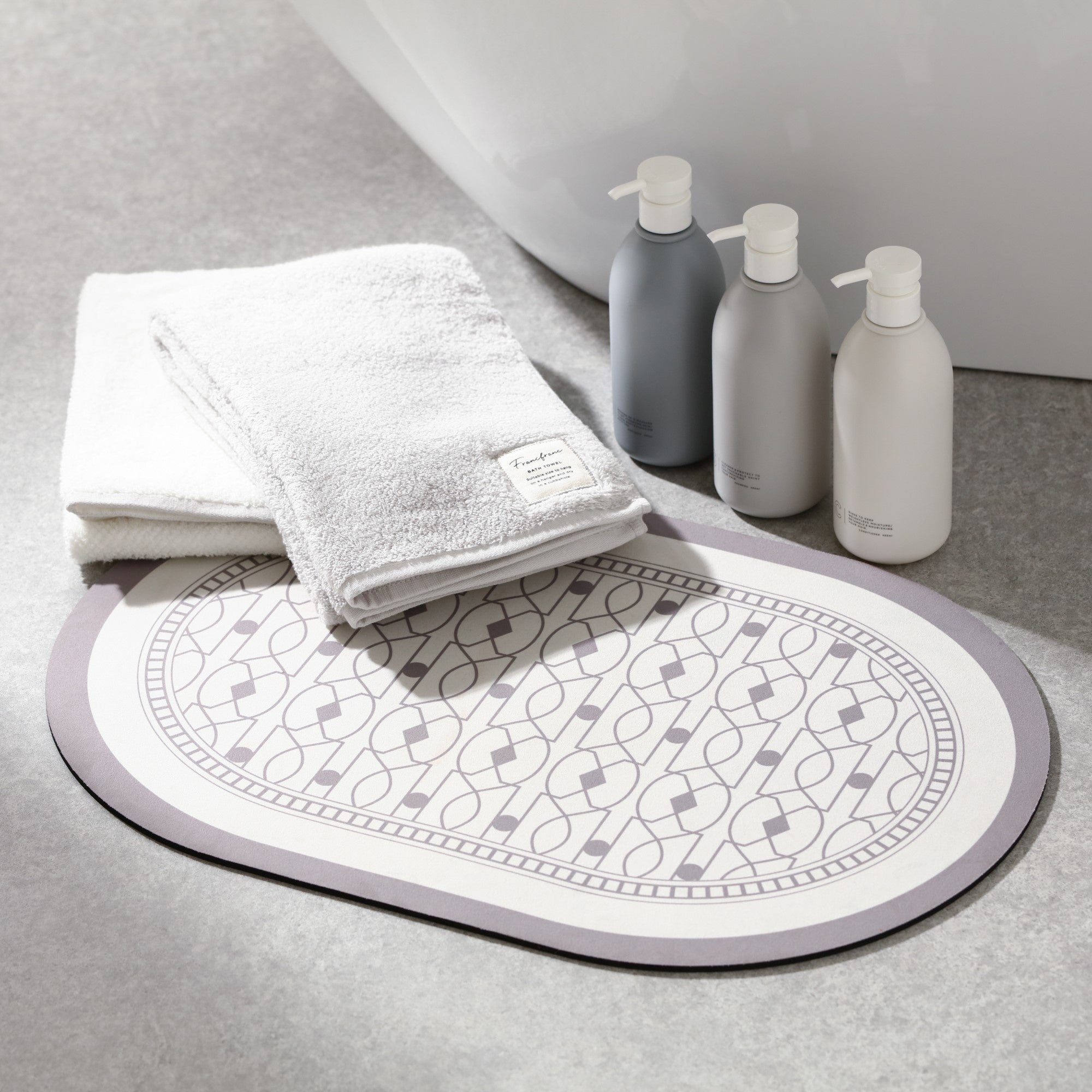 デザイン性の高い珪藻土入りソフトバスマットです。パイル地などでは出来ない繊細な柄や色味が魅力。踏み心地抜群の軽くて柔らかいバスマットなので使用後は掛けて干すこともでき、清潔にお使いいただけます。バスルームを華やかに演出できるアイテムです。