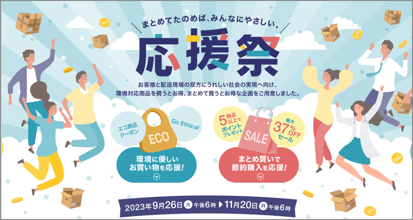 BtoB通販「ASKUL」、必需品の「まとめ購入」や「エシカル消費」を促進する「応援祭」を本日18時から開催