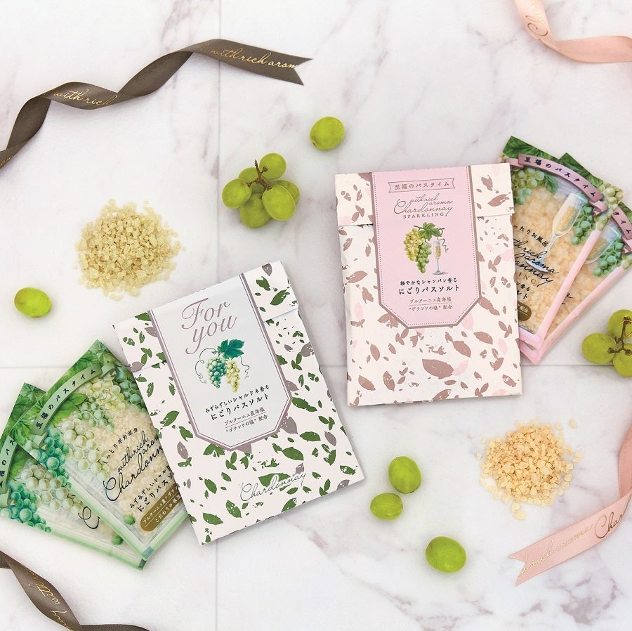 フランスブルターニュ産海塩“ゲランドの塩”を配合した贅沢な大粒バスソルト2個を包んだバスギフトにシャルドネの香りが新登場。2つのシャルドネアロマが揃います。1日の締めくくりに、シャルドネ香るにごり湯でゆったりバスタイムを過ごしませんか?