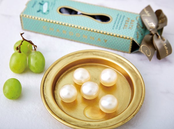 まるで大粒パールのような保湿オイル入り入浴料。湯船に入れると心地よいシャルドネアロマと美容成分が溶け出し、湯ざわりまろやかな乳白の湯を楽しめます。
