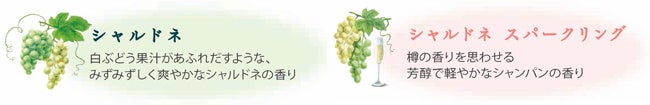 シャルドネ:白ぶどう果汁があふれだすような、みずみずしい爽やかなシャルドネの香り