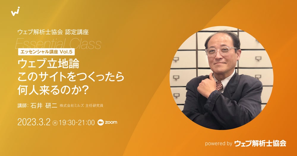 2023/3/2(木)19:30 - 21:00 【エッセンシャル講座 Vol.5】ウェブ立地論 このサイトをつくったら何人来るのか?