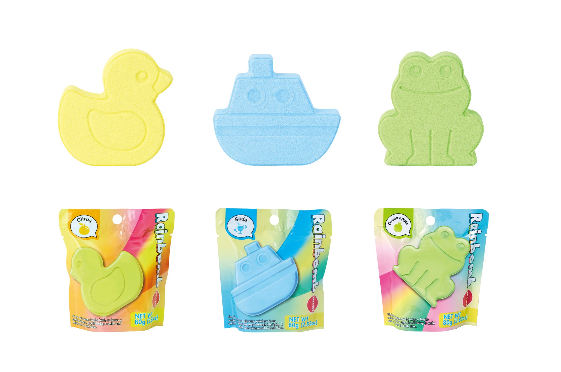 「王様のブランチ」や「めざましテレビ」でも紹介され、小さなお子様からティーンまで大人気の虹が出る入浴剤『Rainbomb』。新シリーズでは、お子様にも大人気の可愛らしい3種のモチーフ、アヒル・ボート・カエルがラインナップ。お風呂のおもちゃでも王道のモチーフは、男女問わず、心躍ること間違いなし!お子様への誕生日プレゼントにもピッタリのアイテムです。