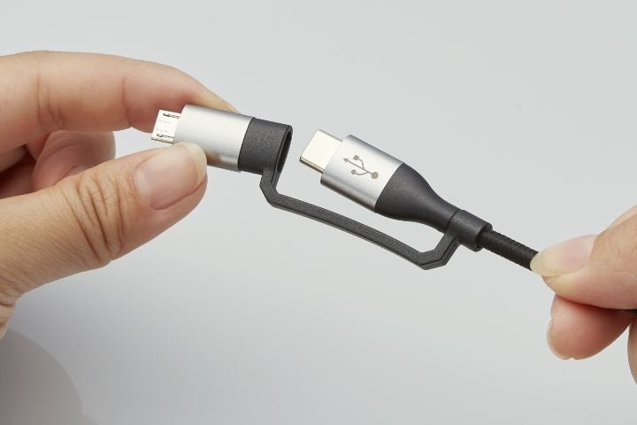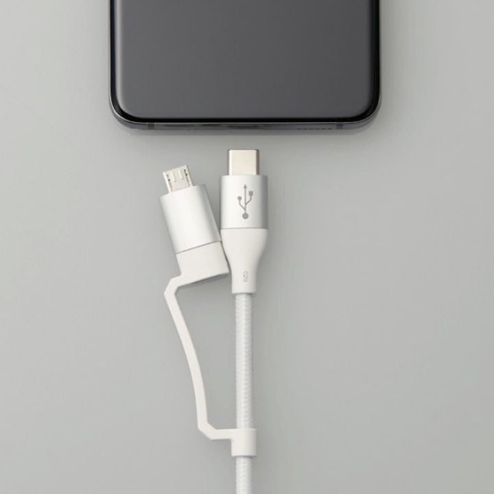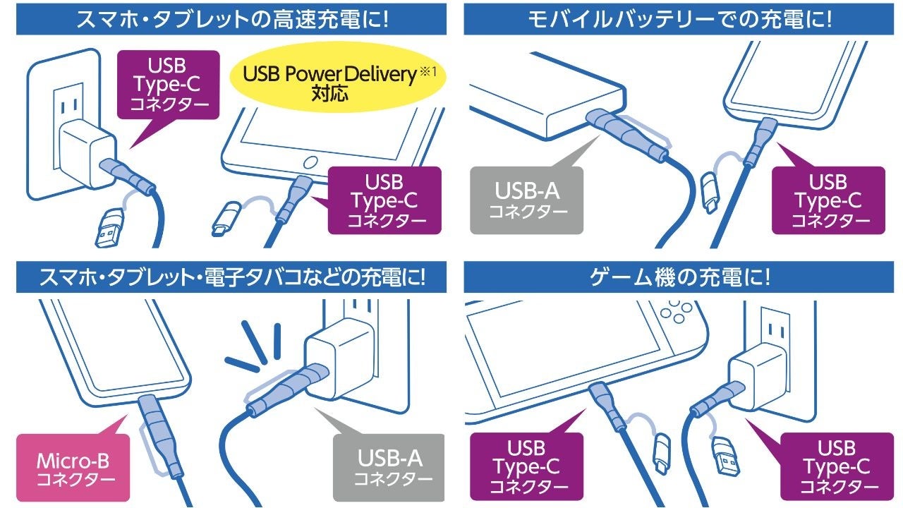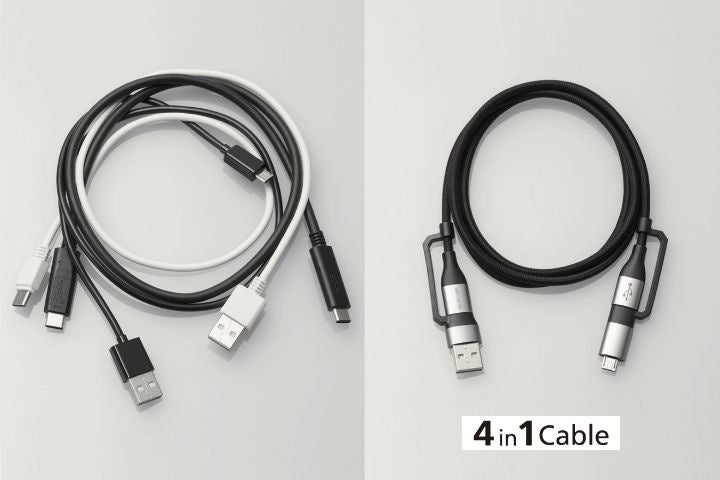 複数の種類のケーブルを用意する煩わしさから解放!スマートフォン、タブレット、バッテリーなど機器に合わせてコネクターを付け替えられる4in1 USBケーブルを新発売