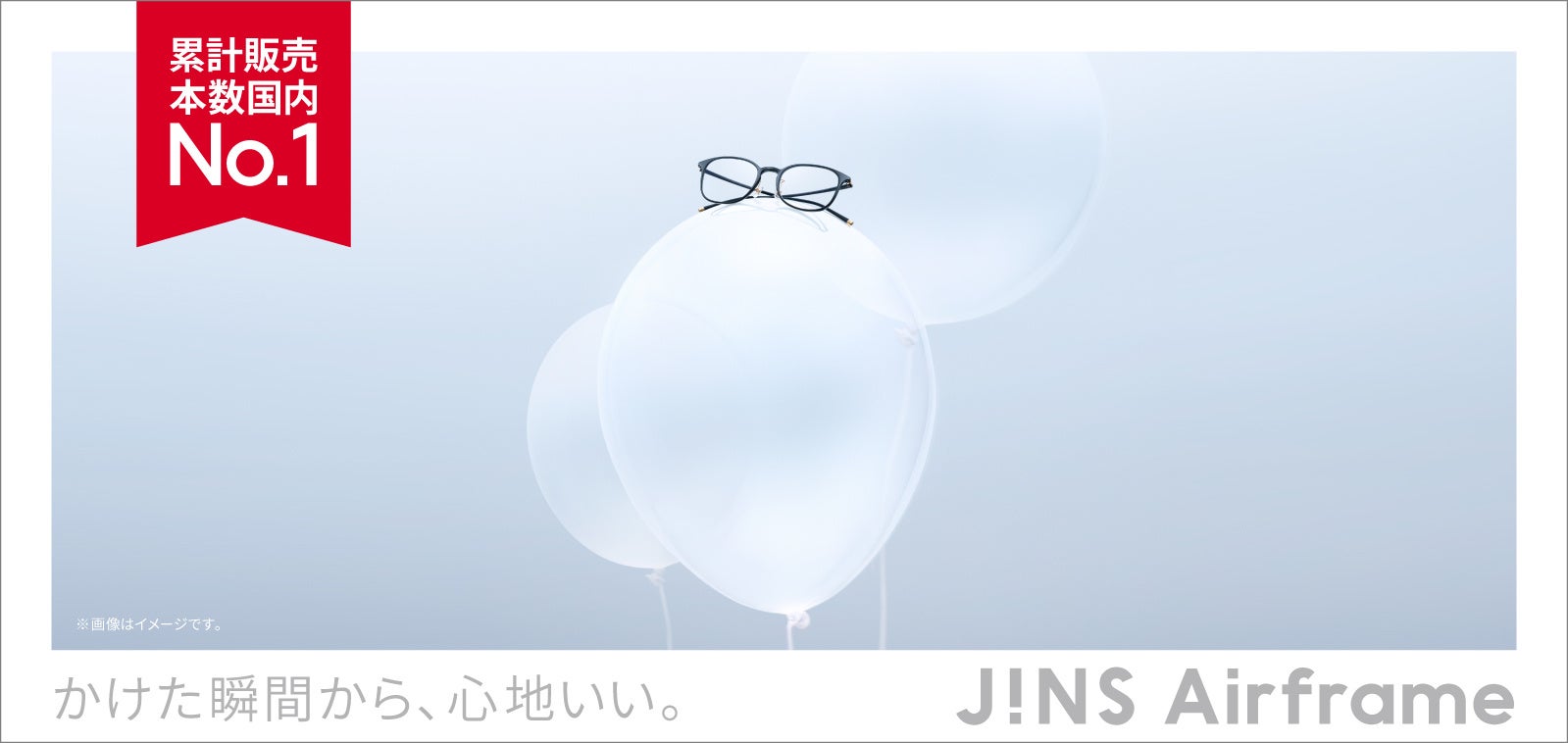 「Airframe」シリーズは2009年の発売以来、“軽量メガネ”という新市場を開拓し、多くのお客さまに支持されているJINSのロングセラー商品です。業界に先駆け発売した軽量樹脂素材を用いたフレームは、「メガネは重いもの」というそれまでの常識を覆し、累計販売本数は、国内No.1※2となる2,600万本※1を突破。軽量メガネ市場を創出し、人々の生活を変革してきました。