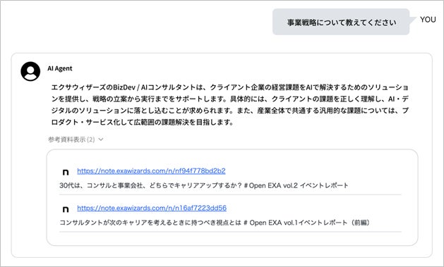 株式会社エクサウィザーズ(東京都港区、代表取締役社⻑ CEO︓春⽥ 真、以下エクサウィザーズ)のグループ会社である株式会社 Exa Enterprise AI(東京都港区、代表取締役︓⼤植択真、以下 Exa Enterprise AI)は、「exaBase 採⽤アシスタント」(以下本サービス)を 2025 年 6 ⽉にリリースすることをお知らせいたします。本サービス内の AI エージェントが 24 時間 365 ⽇候補者からの問い合わせに対応し、採⽤業務の⼤幅な効率化を⽀援します。公開済みの情報をベースとして個別に回答を⽣成するため、柔軟かつ⾼精度な回答が可能であることが特徴です。候補者の⼊⼒情報から「知りたいこと」を可視化し、データに基づいた採⽤戦略を可能にします。