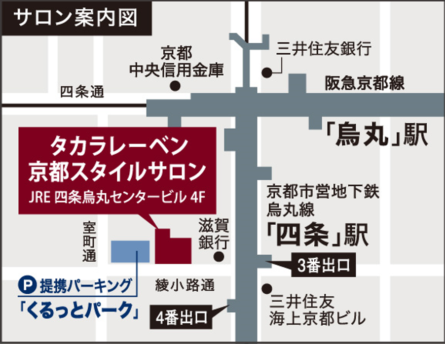 住所:〒600-8421 京都府京都市下京区綾小路通烏丸西入童侍者町159-1 JRE四条烏丸センタービル4階