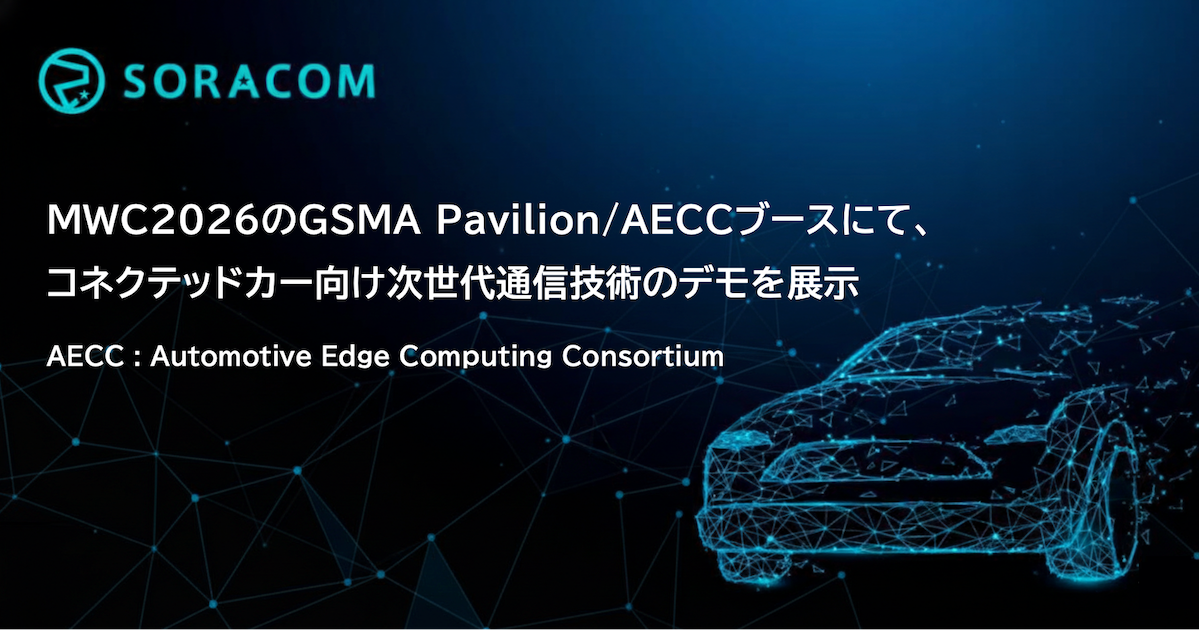 株式会社ソラコム(本社:東京都港区、代表取締役社長 CEO 玉川憲)は、2026年3月2日から開催される「Mobile World Congress 2026(以下、MWC 2026)」のGSMA Pavilion内「Fusion Demo Partner Pod」のAECC(Automotive Edge Computing Consortium)ブースに、ソラコムが開発・実証に協力しているコネクテッドカー向け次世代通信プラットフォーム「IRIGATE」についてのデモンストレーションを展示することをお知らせします。