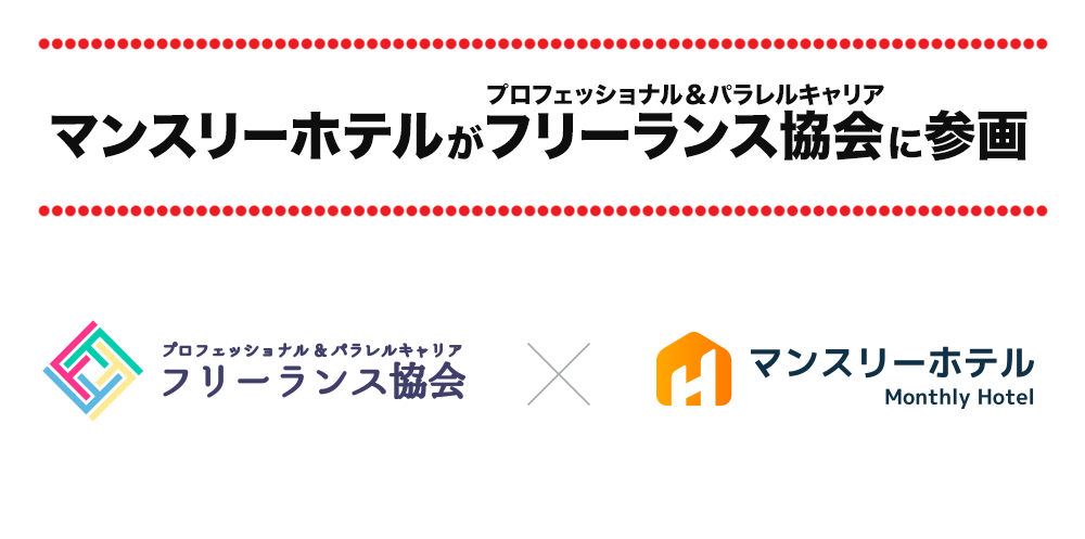 7泊以上の長期予約がリーズナブルな長期滞在専門ホテル予約サイト「Monthly Hotel(マンスリーホテル)」がプロフェッショナル&パラレルキャリア・フリーランス協会に参画