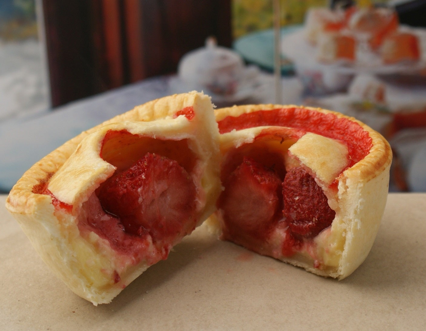 苺を丸ごとカスタードの中に入れたお店自慢のパイです。