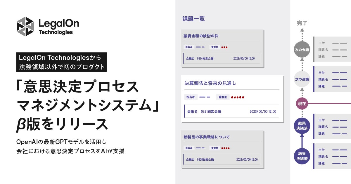 株式会社LegalOn Technologies、法務領域以外で初のプロダクト「意思決定プロセスマネジメントシステム」β版をリリース。