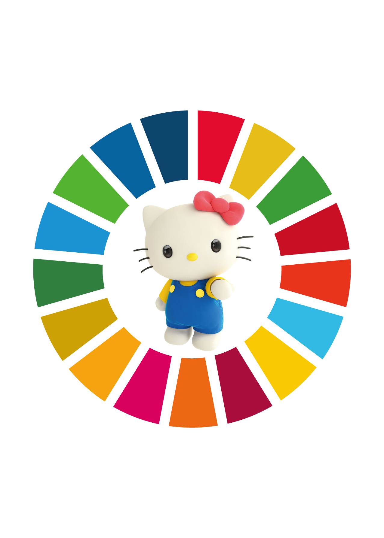 そして、ハローキティは自身のYouTubeチャンネル「ハローキティチャンネル」を中心にSDGsをグローバルに推進するための国連との協働プロジェクト「#HelloGlobalGoals」をはじめとするSDGs応援活動に力を入れています。このプロジェクトではSDGsの17の目標から6つを取り上げ、世界各国においてのSDGs活動を紹介しています。SDGsゴール5「ジェンダー平等を実現しよう」では、ハローキティが国連機関「UN Women」が活動しているヨルダンの難民キャンプを訪問するなどし、みんながなかよく笑顔で暮らせる世界がずっと続くことを願いSDGsへの取り組みを応援しています。