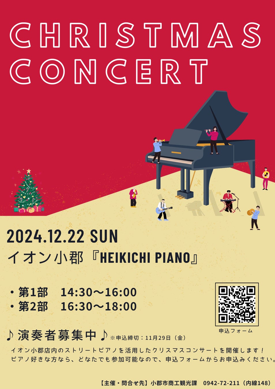 【福岡県小郡市】ストリートピアノでクリスマスコンサートを開催 演奏申込は11月29日まで