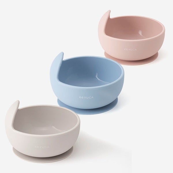 底の吸盤が机にくっついて、食器がひっくり返るのを防いでくれるので、手づかみ食べや、スプーンを使った一人食べの練習にぴったりのアイテムです。スプーンですくいやすいよう、側面が緩やかなカーブになっていることに加え、深さも丁度良いので、子どもが自分で食べたいという気持ちを応援します。電子レンジ使用可能なのもうれしいポイントです。