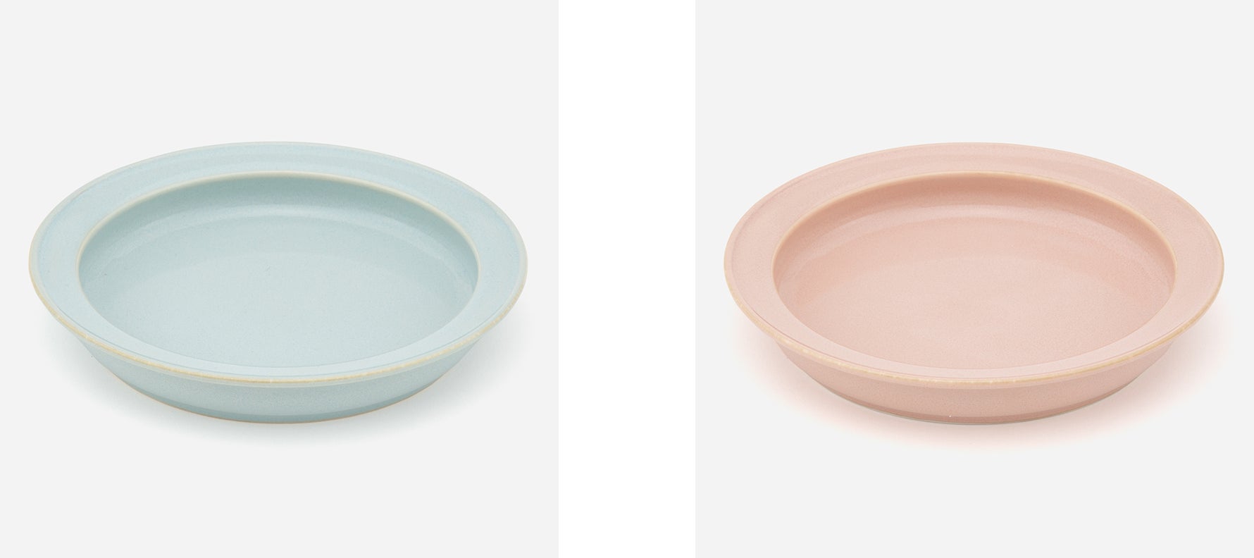 子育て中のママ・パパの声に加えて、育児中の開発担当者の声をもとに開発された新作「すくいやすいプレート」は、小さな子どもでも食べ物をこぼさず簡単にすくえるように、内側面にカーブをつける(株)山加商店のユニバーサル多用深皿という食器形状を採用しました。グッドデザイン賞を受賞した形状で、子どもたちの「やってみたい」という気持ちを応援します。また、「すくいやすいプレート」の最大の特徴はカラーで、(株)山加商店に何度もサンプルを作成いただき、完成しました。「ウノフ」と呼ばれる独特の変化のある釉薬を採用。同シリーズのアイテムとの相性も良く、セットでお使いいただけます。また、19センチというサイズは、ワンプレートでも使いやすいのもポイントです。さらに、電子レンジや食器洗浄機へも対応可能なので、使い勝手がよく、どんなシーンでも活躍します。
