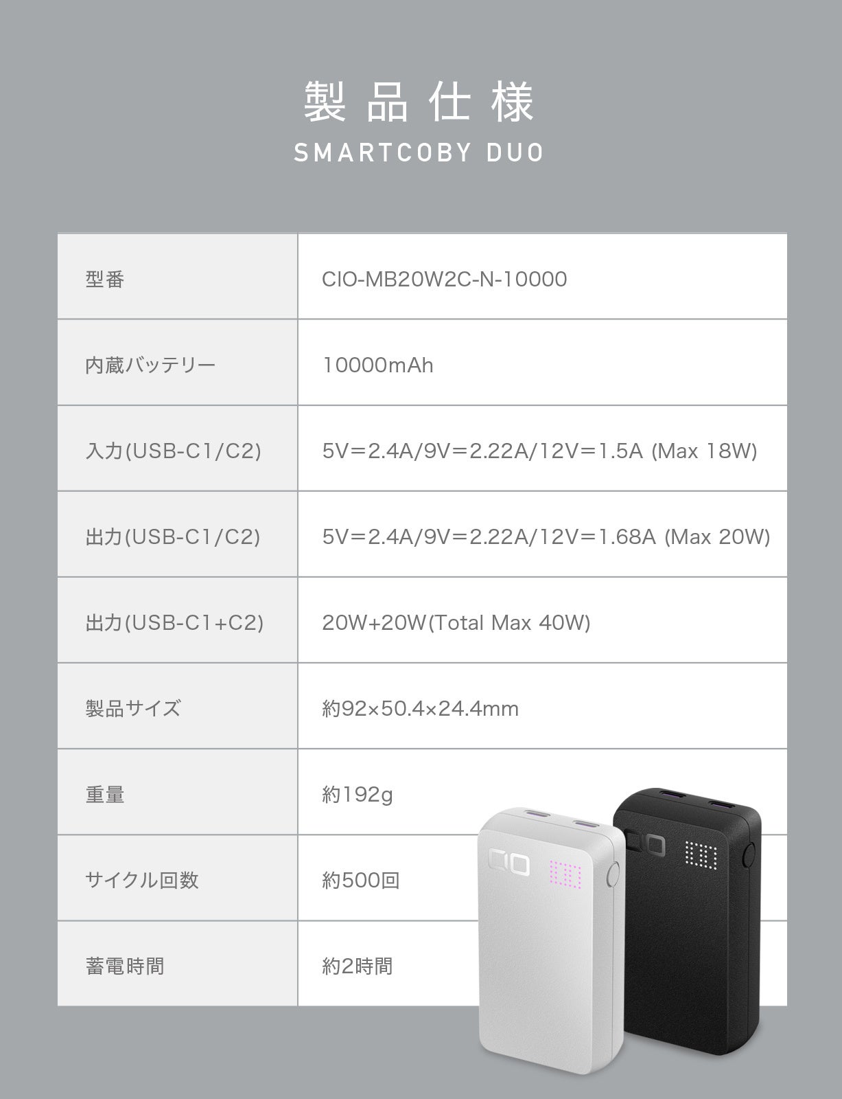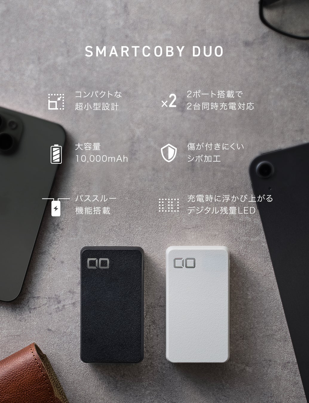 CIOのモバイルバッテリー“SMARTCOBYシリーズ”の中で、超コンパクトかつ合計出力40W対応の人気のモバイルバッテリー『SMARTCOBY DUO』にシボ加工・新機能が追加されて新登場!