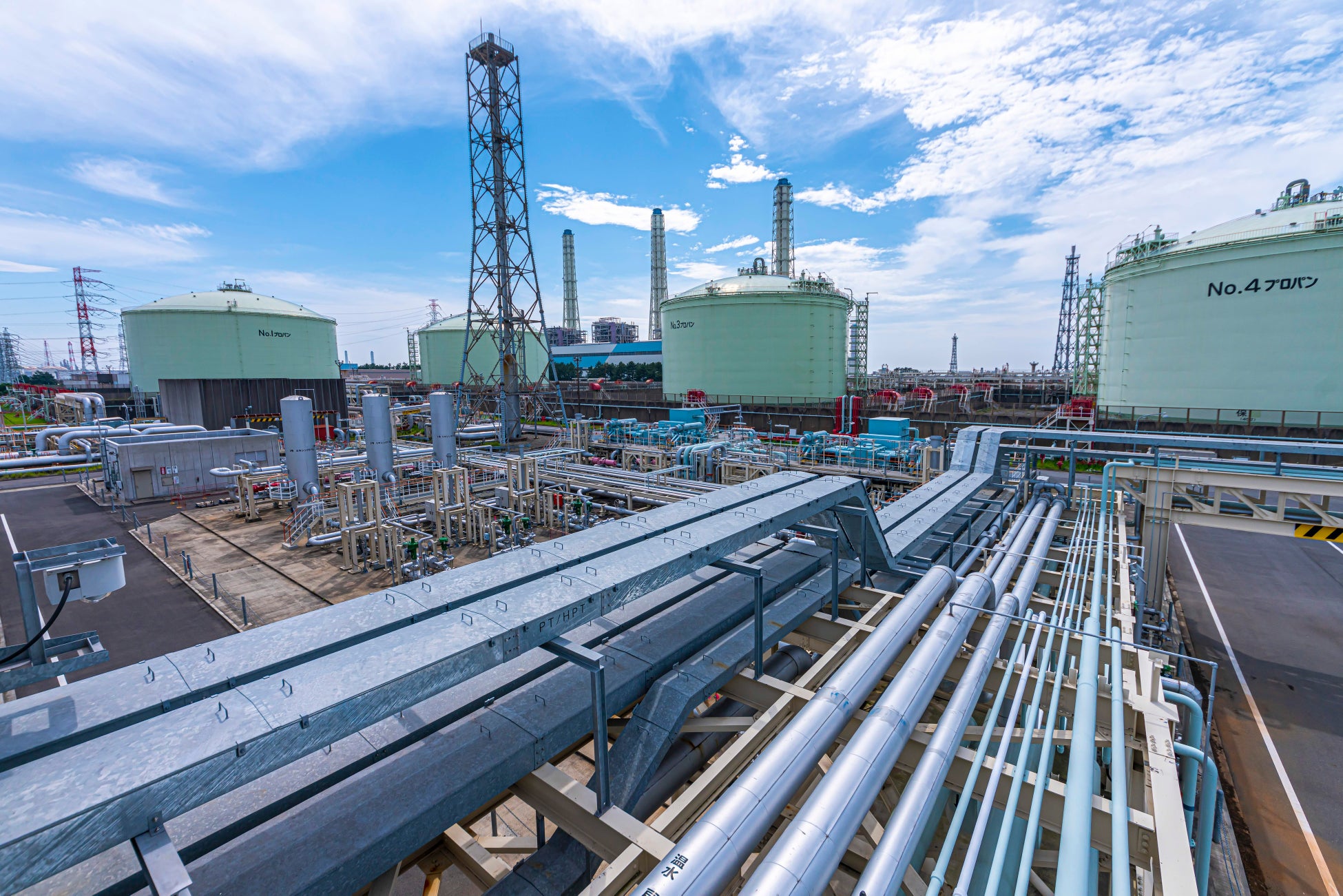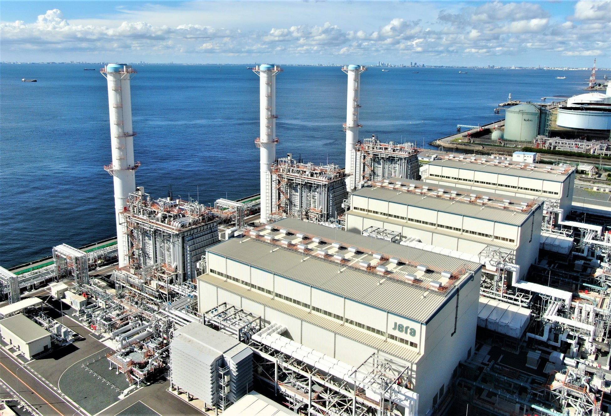 JERAは、東京電力と中部電力の包括的アライアンスを基に、国際競争力のあるエネルギー企業を目指し設立されました。燃料の調達から発電、電力・ガスの卸売まで一貫して担い、国内火力発電の約半分を占める発電能力と、世界最大級の燃料取扱量を誇ります。JERA 姉崎火力発電所は、千葉県市原市の臨海部に所在し、液化天然ガス(LNG)を燃料とする火力発電所です。