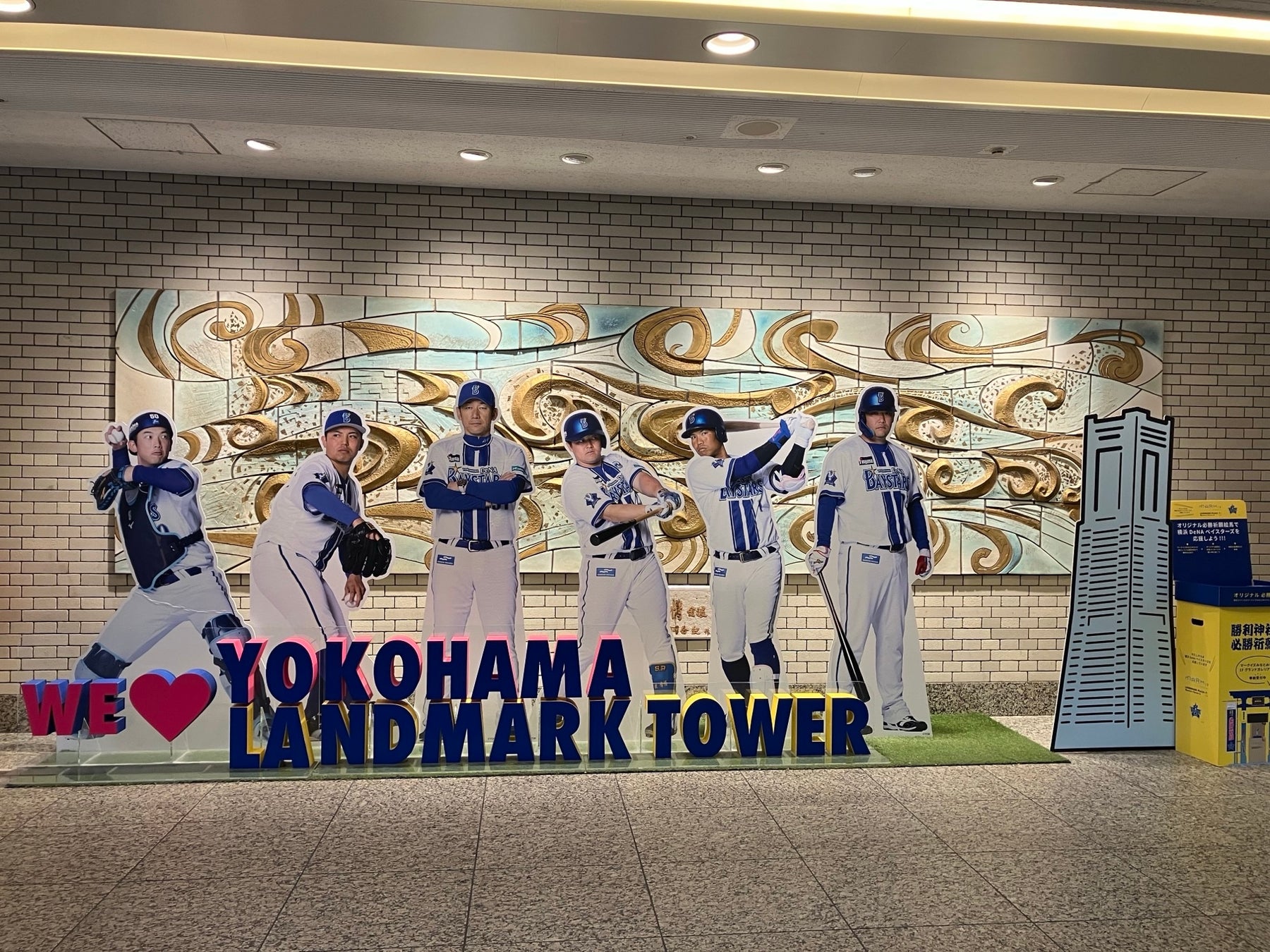 加えて、両施設では選手・チームへの応援メッセージや自身の願い事を自由に書くことができるオリジナルデザインの「必勝祈願絵馬」を数量限定で配布いたします。また、書いた絵馬は実際にMARK IS みなとみらいに建立している「みなとみらい勝利(ビクトリー)神社」にて奉納することが可能です。他にも、ランドマークプラザに設置している選手の等身大パネルでは、三浦監督、牧選手、東選手、筒香選手、桑原選手、山本選手とともにチームの一員になったかのような写真を撮影できます。