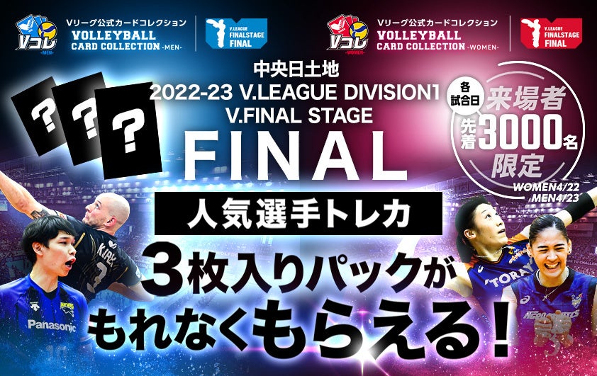 プロスポーツチームやリーグ向けのデジタルトレーディングカードサービスを開発、運営している株式会社Tixplus(本社:東京都渋谷区、代表取締役:池田 宗多朗、以下Tixplus)は、一般社団法人日本バレーボールリーグ機構(以下、Vリーグ機構)の公式カードコレクションサービス「VOLLEYBALL CARD COLLECTION(以下、Vコレ)」内にて、2023年4月22日(土)と23日(日)に開催される2022-23 V.LEAGUE DIVISION 1 V.FINAL STAGE(以下、V.FINAL STAGE)と連動したプレゼントキャンペーンを実施いたします。