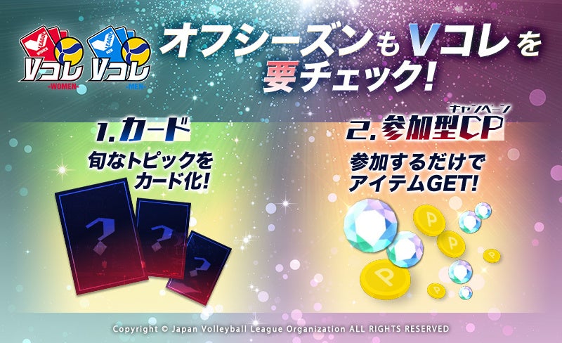 オフシーズン中も選手たちの迫力あるプレーを感じられる「Vコレ」の新カードをお楽しみに!
