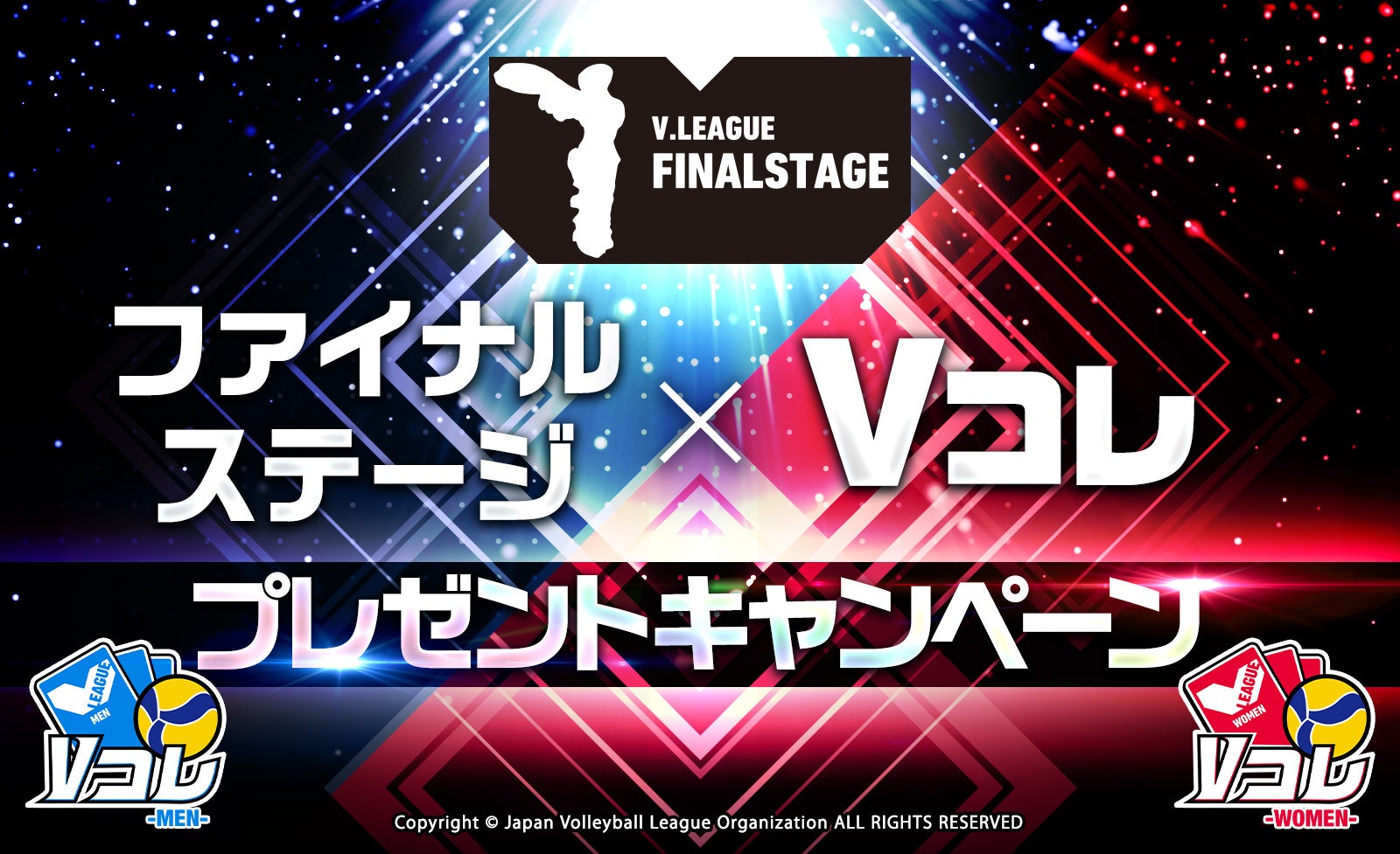 Vコレは、V.LEAGUEに参加する選手たちの決定的な瞬間を豪華なカードにして配信するデジタルトレーディングカードサービスです。今回のキャンペーンでは、V.FINAL STAGE 第1セット目のスタメンを予想するスタメン予想を開催します。参加方法はVコレ内特設ページにて、出場両チームのスタメン予想を入力して応募してください。全14選手全てを的中させた方の中から抽選でMEN・WOMEN各3名様に選手直筆サイン入りポスターをプレゼントいたします。全問正解しなくても、予想を的中させた数に応じてVコレ内で使えるアイテム「ダイヤ」をプレゼントいたします。参加するだけでもVコレ内のデジタルカードを入手できる「コイン」をもらえるため、ぜひご利用ください。
