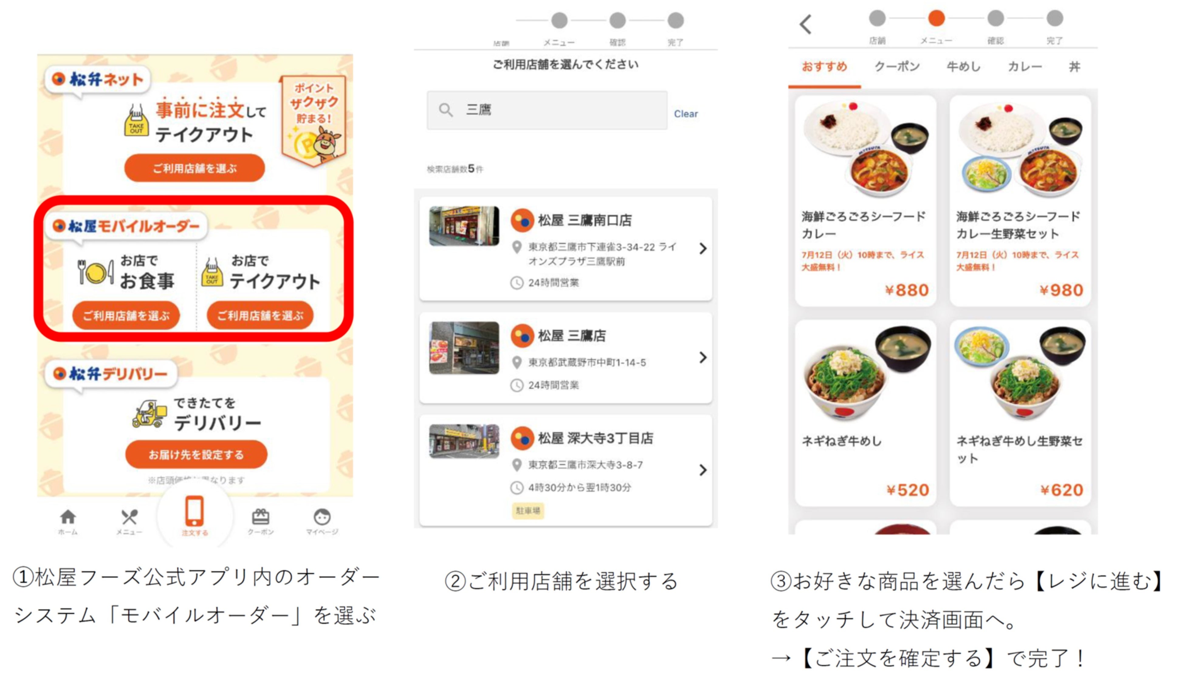 券売機を使わず、スマホで簡単ラクラク注文「松屋モバイルオーダー」。