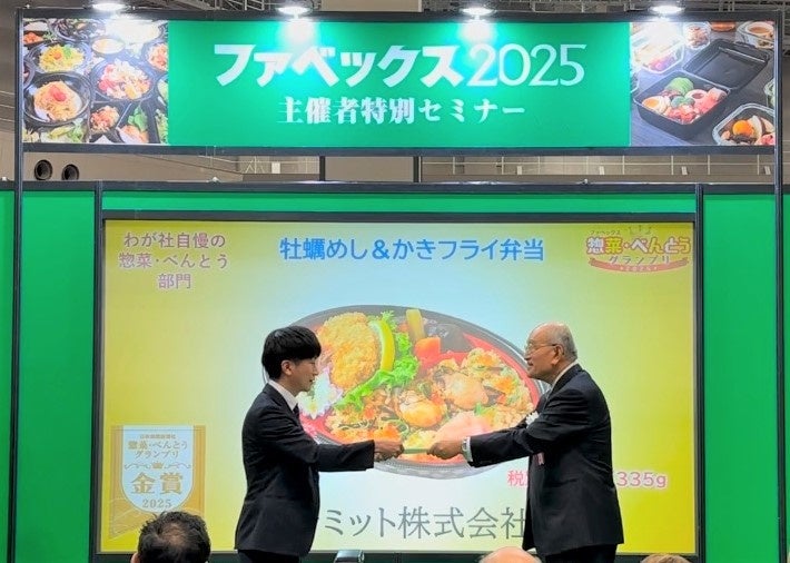 サミットの、「牡蠣めし&かきフライ弁当」が日本食糧新聞社主催の「第16回 ファベックス 惣菜・べんとうグランプリ2025」において、1408品の中から「わが社自慢の惣菜・べんとう部門」最高評価金賞を受賞しました。本商品は、今年1月開催の「お弁当・お惣菜大賞2025」においても入賞を果たし、今回を含め2つの賞を受賞しています。