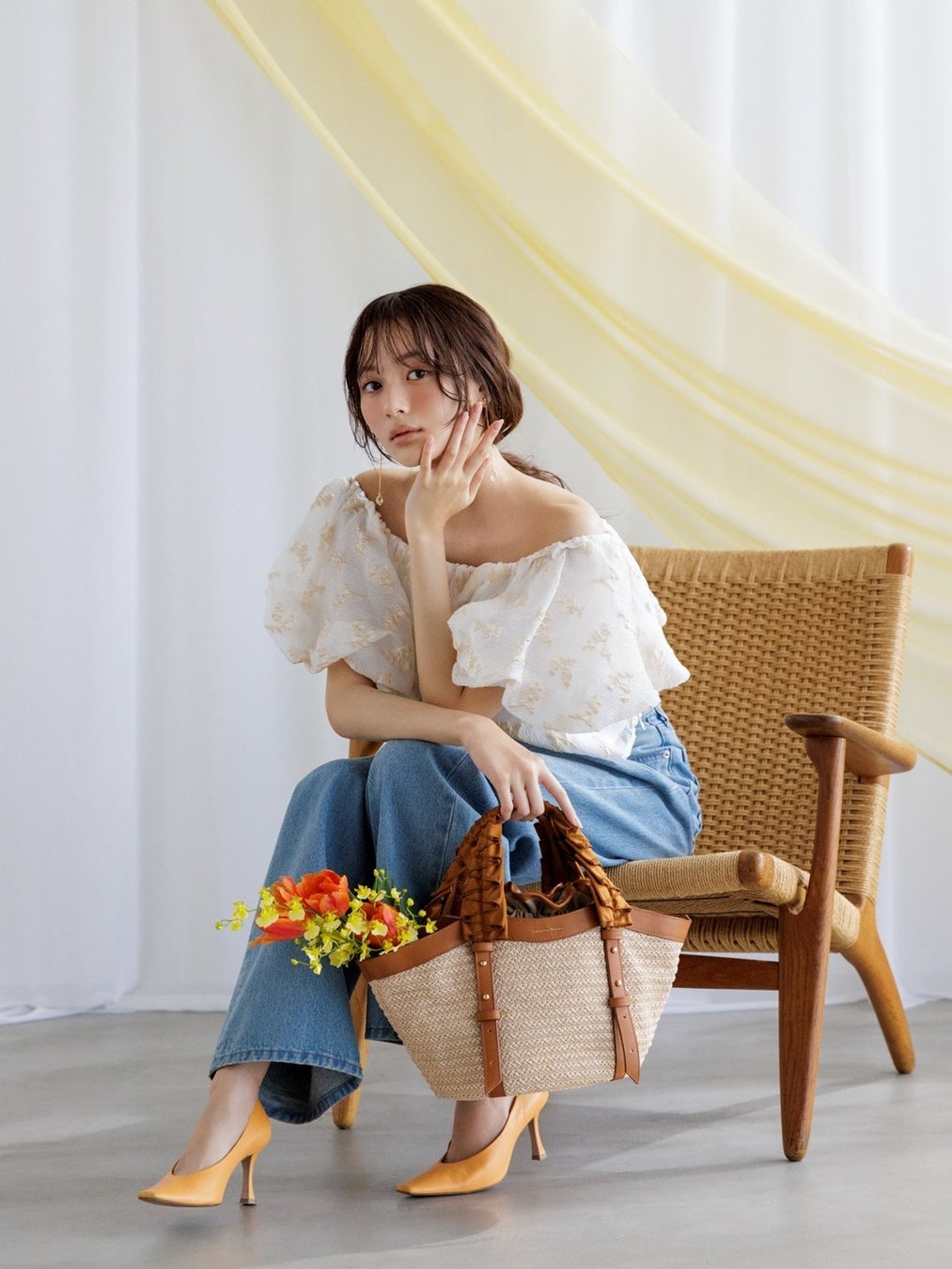 ハンドルのフリルデザインがポイントのカゴバッグ。ハンドルの長さを調整できる2way仕様で、肩掛けも可能です。取り外し可能なポーチ巾着も付属で、バッグからチラッと見えるフリルが可愛らしい印象に。初夏を感じる涼し気な印象で、一気に季節感をプラスしてくれます。