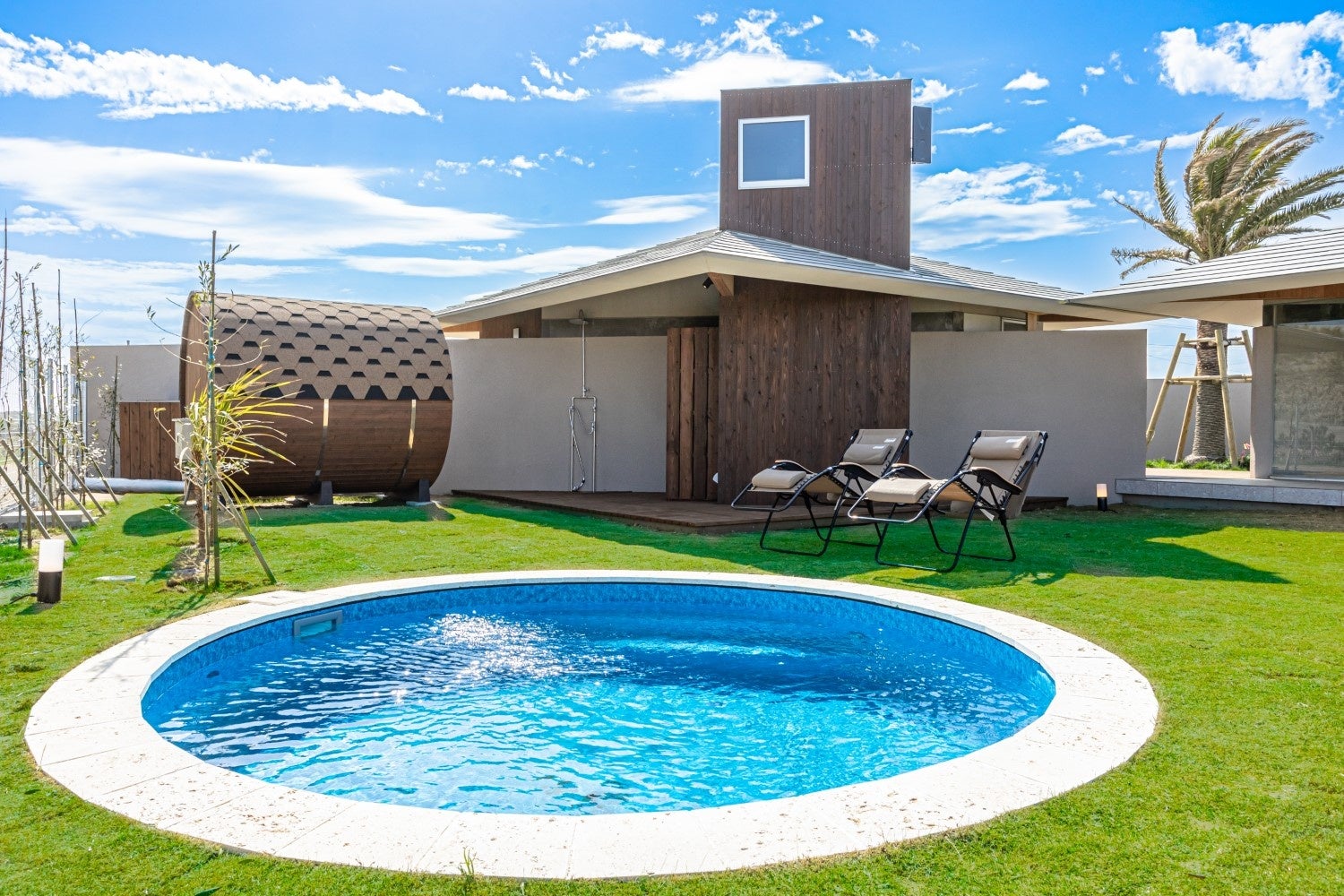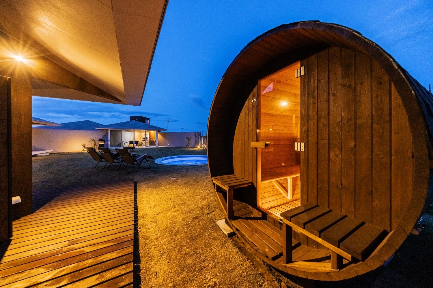 NAGARAMI RESORT SOSAでは、今大人気のバ レルサウナを各棟に配置いたしました。