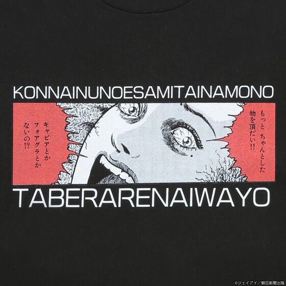 伊藤潤二原作のホラー漫画「富江」より、富江の食へのこだわりを表現したTシャツです。