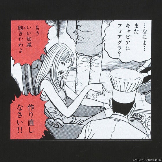 あるときは手料理をけなし、キャビアやフォアグラを要望し、またあるときはキャビアやフォアグラが飽きたと言い放つ、「富江」の食へのこだわりと狂気が凝縮された、
