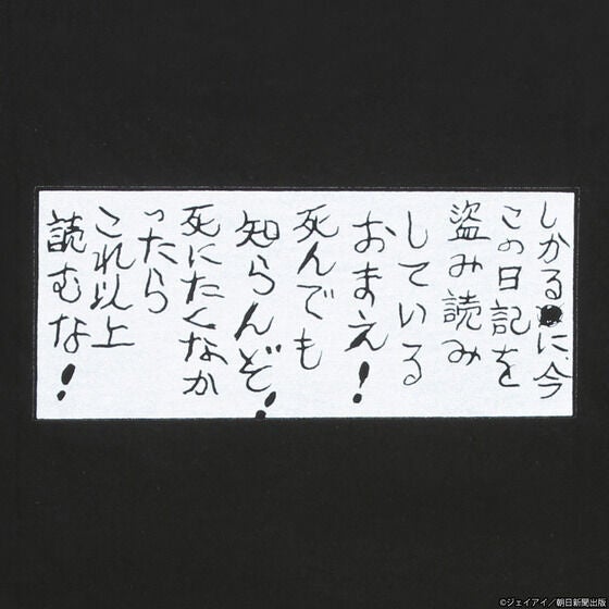 伊藤潤二原作のホラー漫画「双一の楽しい日記」より、双一が日記にしたためた「呪いの言葉」が表面・背面にあしらわれたTシャツです。