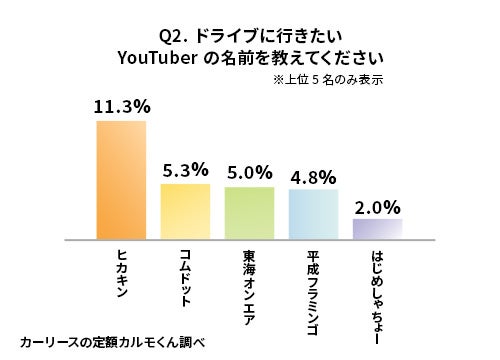 Q2. ドライブに行きたいYouTuberの名前を教えてください