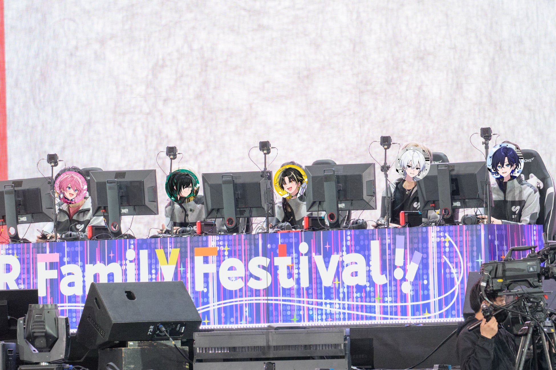 ステージ上に置かれたすべての風船を先に割ったチームが勝利をつかむ風船割りで、「家に帰る道中風船を割り続けた」と競技への余裕さを語る白組のすとぷりジェルと紅組のAMPTAKあっとが突然一騎打ちを始めたことも、ルールに縛られないエンタメ性あふれ、会場を沸かせたワンシーンに。また、4月5日(土)には、紅組に、思い出系ネットパフォーマンス集団・フィッシャーズのモトキ、ダーマ、マサイ、白組には、カラフルピーチのたっつん、ゆあんくん、なおきり、シヴァと強力な助っ人も駆けつけ、モトキとたっつんによるぷよぷよテトリスにはそのレベルの高さにドーム全体から驚嘆の声があがった。アリーナ席側に降りて対決した太鼓の達人で、ガチ勢組のめておらのLapisとカラフルピーチのゆあんくんが、最上級の難易度の「おに」で「スキスキ星人」をプレイし、フルコンボを達成したこともハイライト。UFOキャッチャーでは、すとぷりのぬいぐるみを見事に獲得したすとぷりのさとみと、めておらのメルト・ダ・テンシがアリーナ席に向かってぬいぐるみを投げる場面も。2日目ラストのゲーム、スプラトゥーン3を終え、勝利を収めたのは、「昨日は砂になったんですけど、今日負けたら廃部です」と言い切ったころんの白組。つまるところ、勝敗に左右されない、エンタメの極みだった。