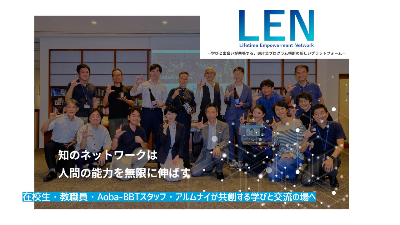 株式会社Aoba-BBT(本社:東京都千代田区、代表取締役社長:柴田 巌)は、2025年度より開始するグループ横断の周年プロジェクト「Life-time Empowerment in Invisible continent」の一環として、卒業生を対象とした新たな学習・交流プラットフォーム「Lifetime Empowerment Network(以下、LEN)」を正式に開設いたしました。