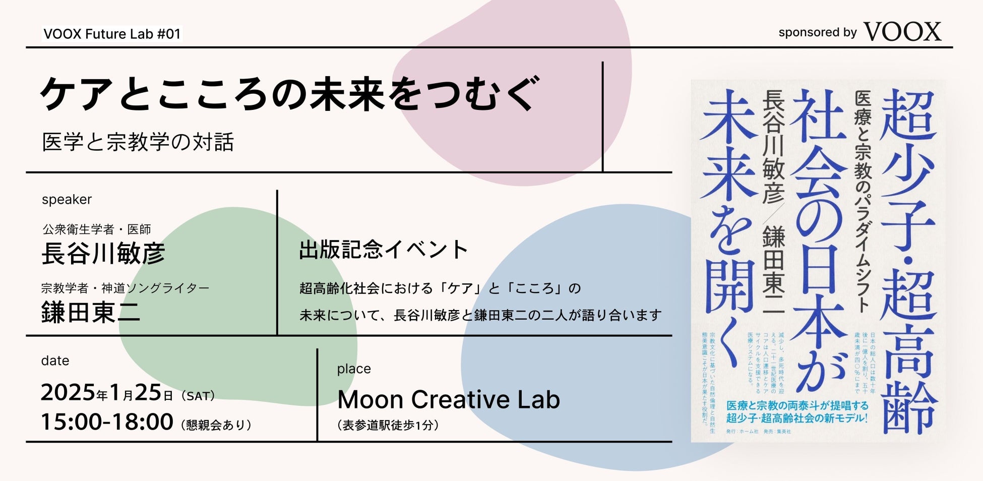本イベントは、書籍刊行記念イベントであるとともにVOOX Future Labの記念すべき第一回イベントでもあります。未来の世界をデザインしていくための知の公園としてうまれたVOOX Future Lab。そのキックオフとしてすばらしい対談を実現できたことを心より感謝申し上げます。