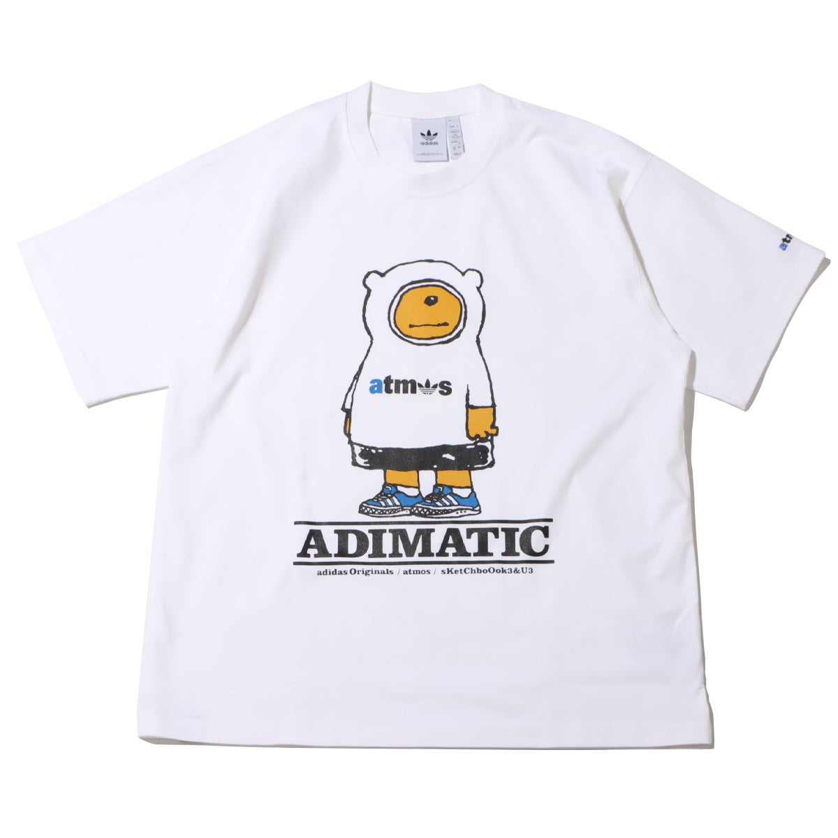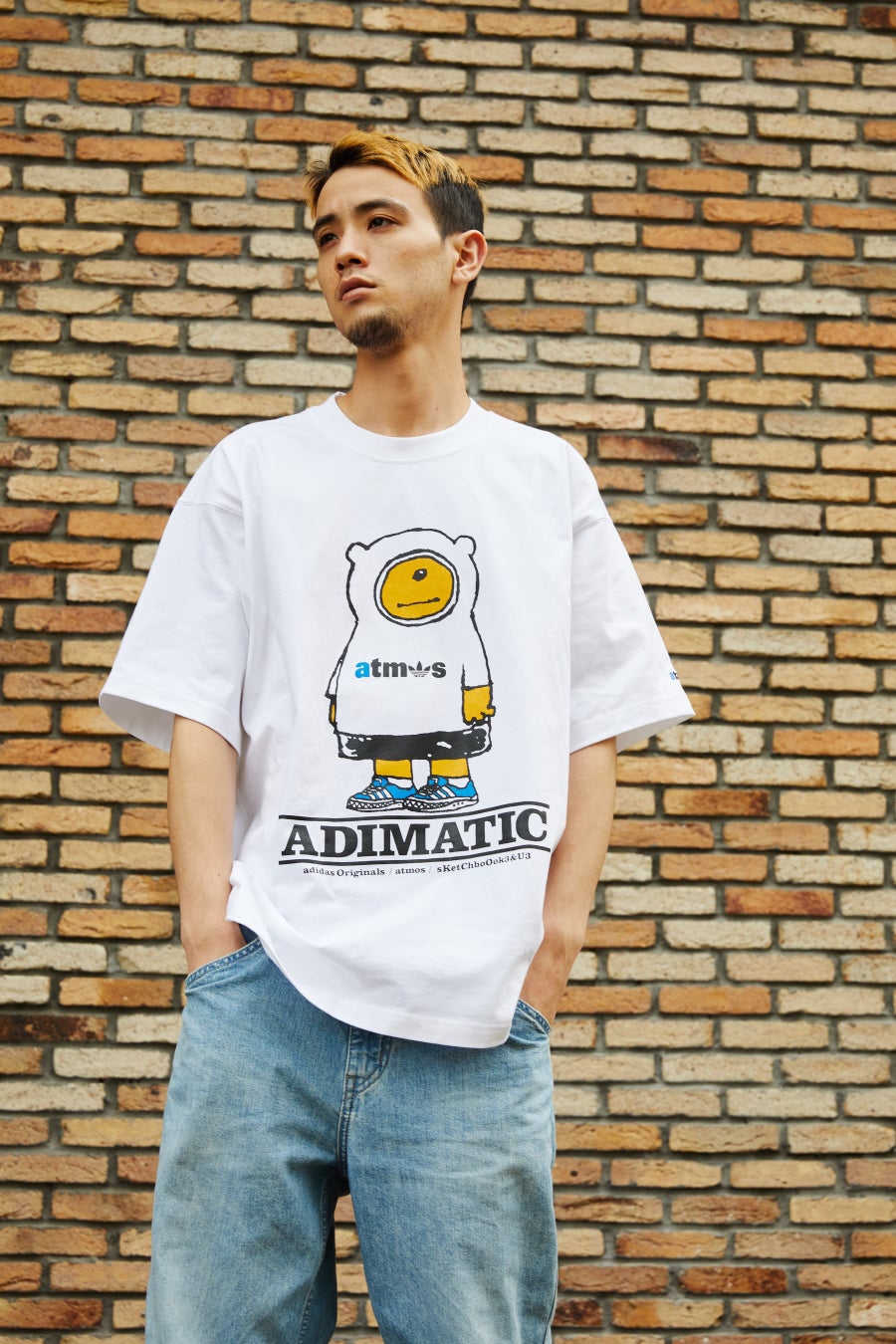 今回のADIMATIC atmos Blueの発売を記念し、アーティスト「sKetChboOok3」とのコラボレーションアパレルも同時発売。ラフなタッチで描かれたキャラクターが「ADIMATIC atmos Blue」を履いているデザインは、コラボレーションならではのアイテムとなっております。
