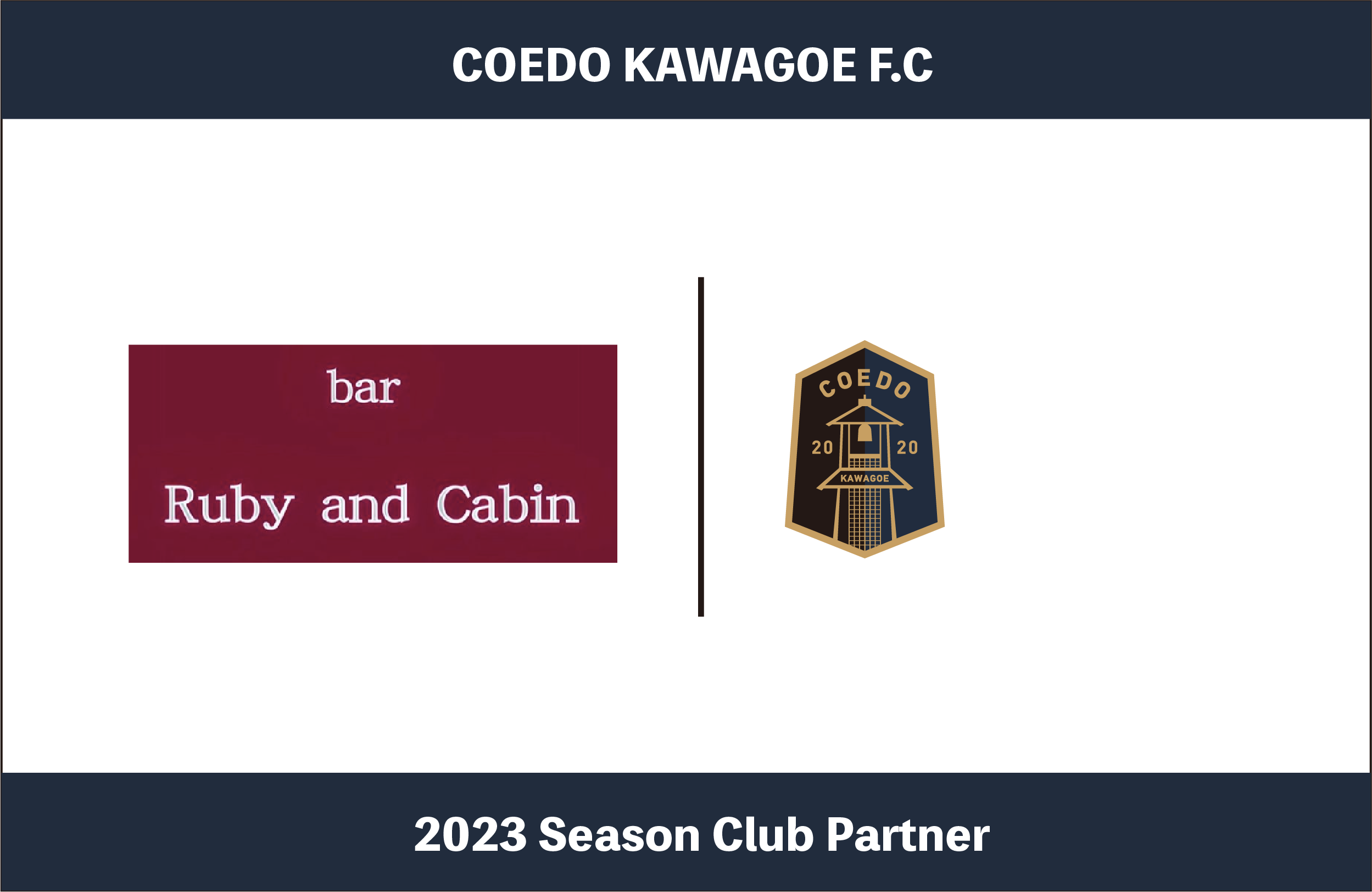 「この度、南大塚駅近く、こだわりのオールドボトルを提供するバー、bar Ruby and Cabin様とパートナー契約を締結させていただいたことを大変嬉しく思います!店主の大前様は以前サッカーをされており、川越でプロサッカーチームができることに大変期待をいただいています。その期待に応えていけるよう、COEDO KAWAGOE F.C一丸となって、川越の街の発展に寄与していく所存です。2023シーズン、どうぞよろしくお願いいたします!」