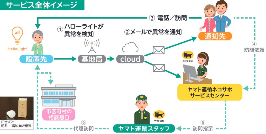 豊中市は、ひとり暮らしの高齢者等が住み慣れた地域で安心して生活できるよう、ヤマト運輸株式会社が提供する「ハローライト電球」を活用した見守りサービスを開始します。