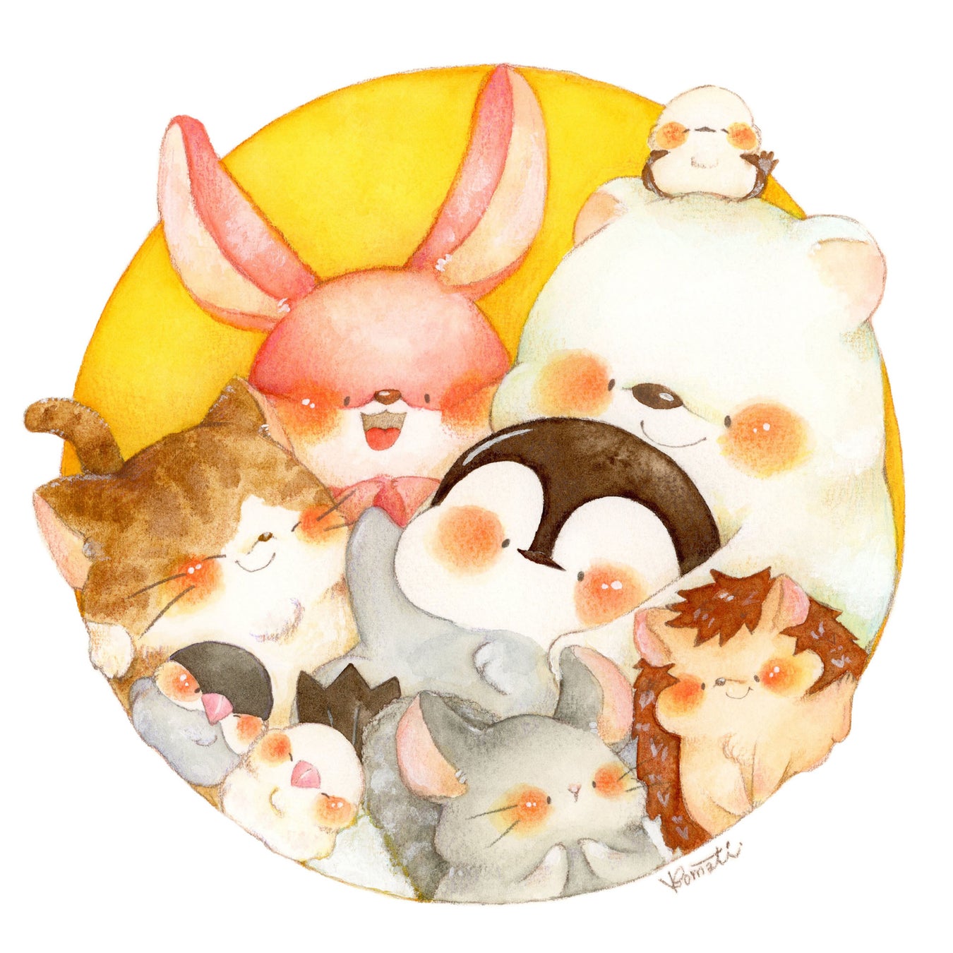 見ると思わず笑みがこぼれるような【 もふ もち どうぶつ 】達を中心に あたたかく描く、京都府在住のイラストレーター。 企業様との商品コラボや挿絵担当、 各地イベント出展や商業施設での POPUP 等でオリジナルグッズの販売を行なっています。