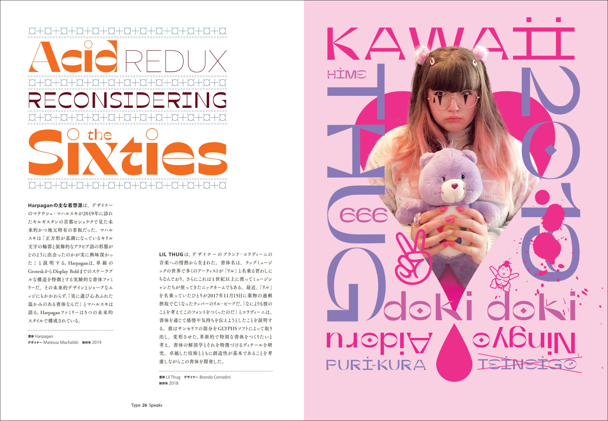 書体と編み物の融合「タイポ・ニッティング」や、食と書体の文脈の融合「フォント・ペアリング」、タイポグラフィのタトゥーを施す活字専門家の紹介など、書体の紹介のみならず、様々な角度から楽しむことができます。タイポグラフィ最新事情が知れるコラムも必見!